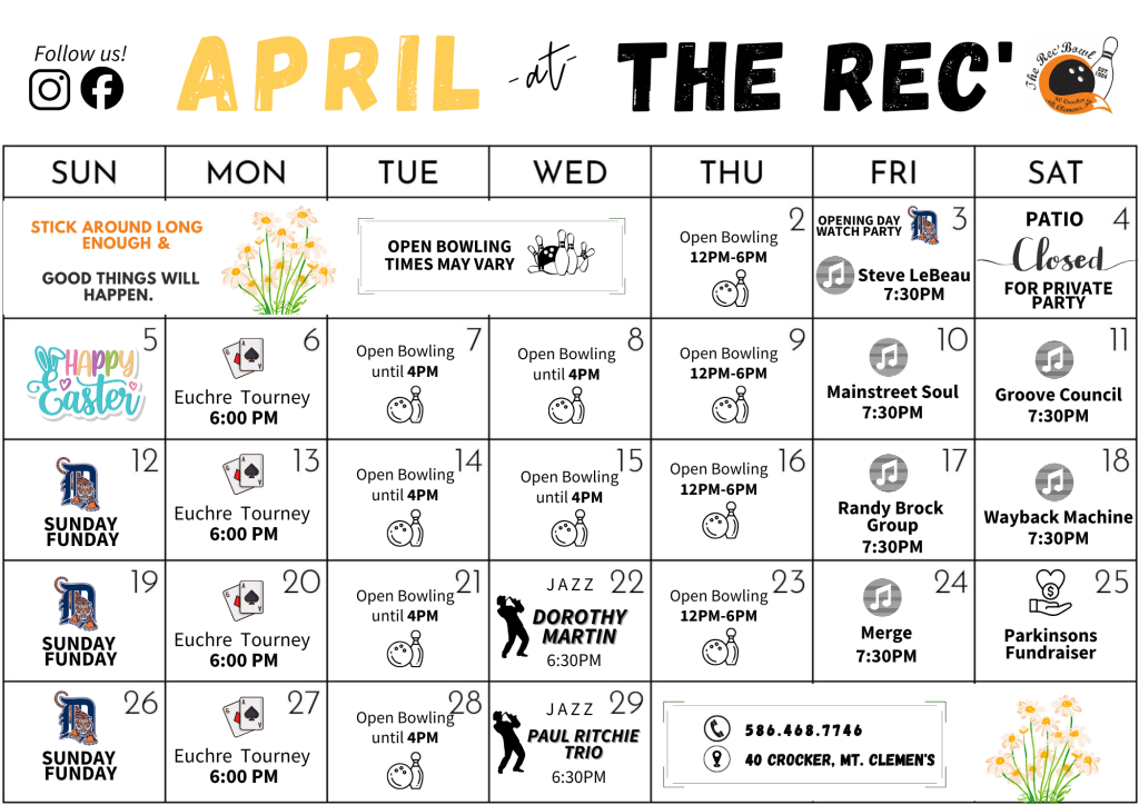 The Rec Bowl is, and will continue to be, a legendary staple of Downtown Mount Clemens. We are a host to some of the areas finest events and entertainment. Our retro, masterfully maintained, eight-lane bowling alley is ready for the good times.